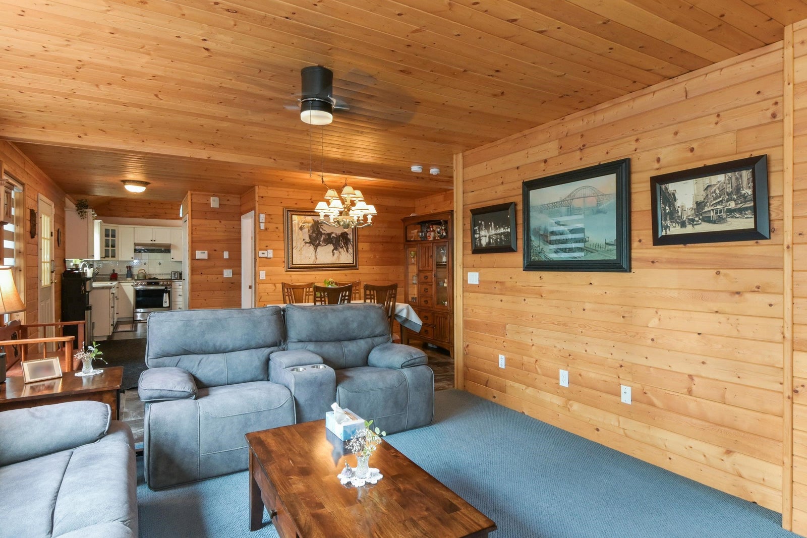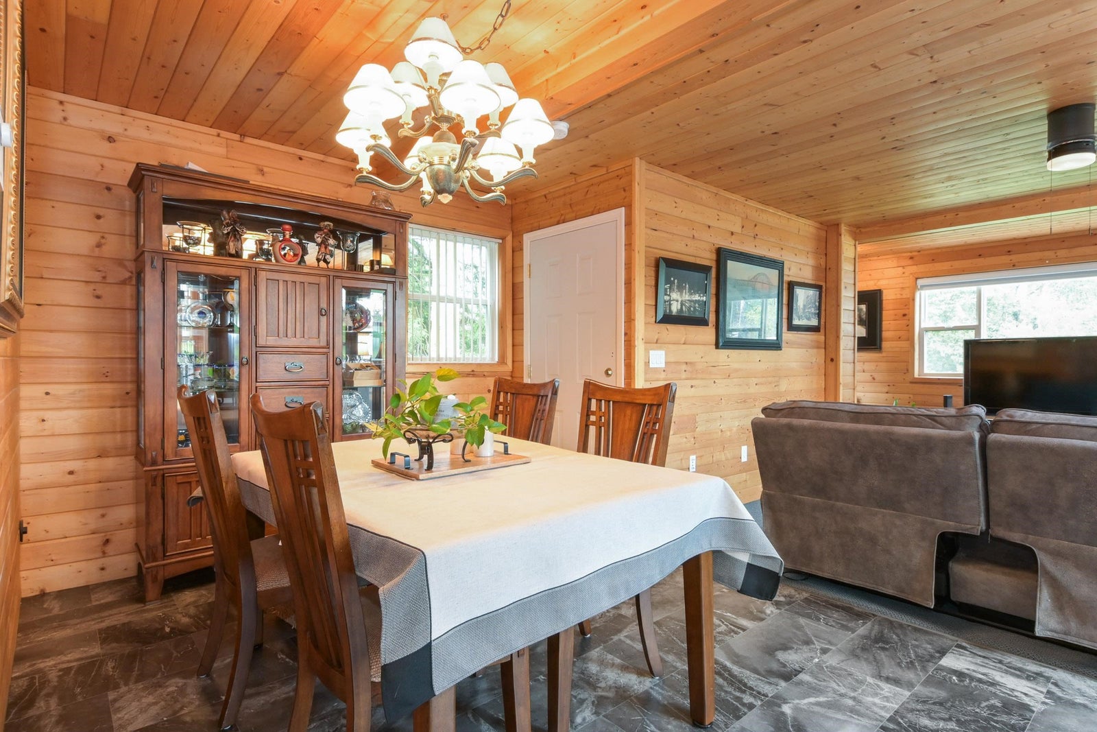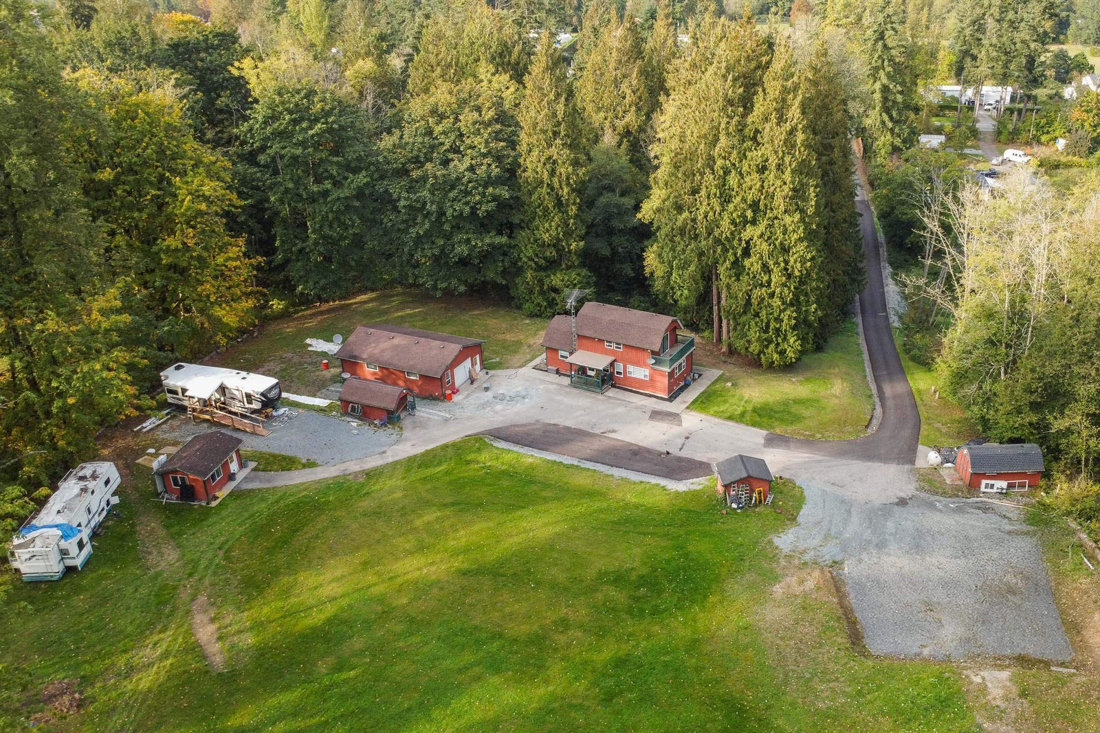 Calling all car enthusiasts! Are you looking for a unique property that’s private, peaceful, & has room for all your toys? This one-of-a-kind home sits on 4.26 acres in desirable Glen Valley. Featuring a huge 39' x 23' garage, plus three additional outbuildings, all with power & plenty of open parking. The home offers interlocking pine wood panel walls, an updated kitchen with SS appliances & a gas stove, newer windows that capture beautiful natural light & views of the property, carpet, an alarm system, a newer washer/dryer, a newer hot water tank, & a generator. The primary bedroom is impressive, boasting vaulted ceilings, over 500 sq. ft. of space, a spacious walk-in closet, & an ensuite with a Jacuzzi tub. Enjoy summer evenings relaxing on your private balcony. Downstairs includes a ga