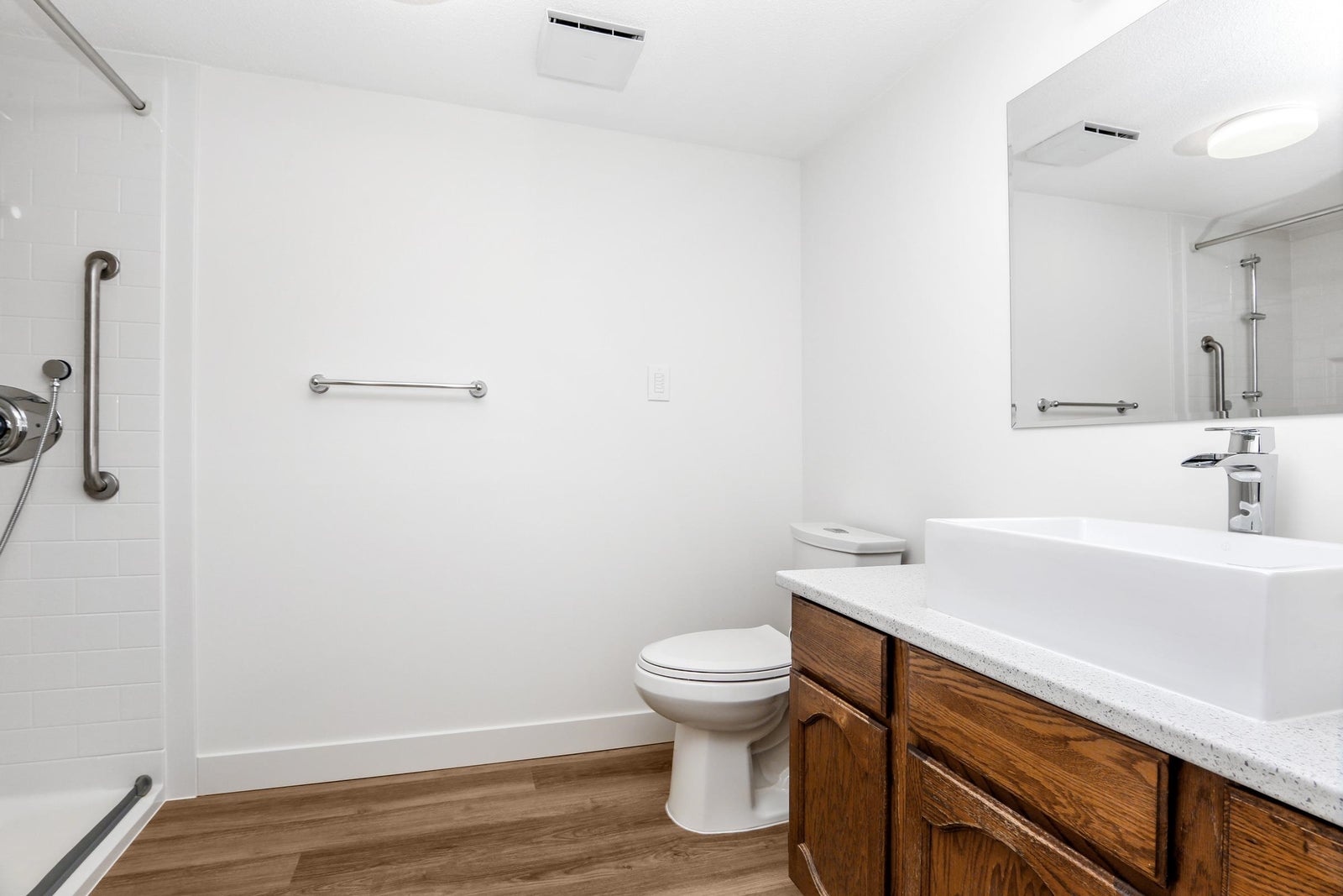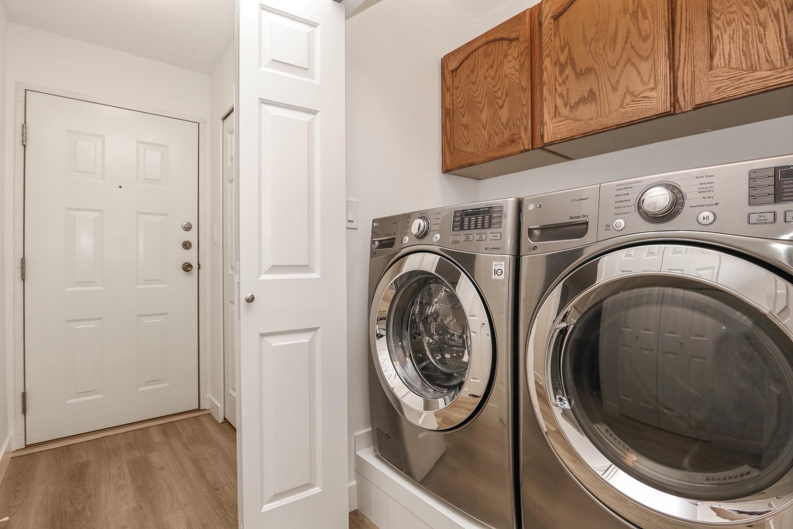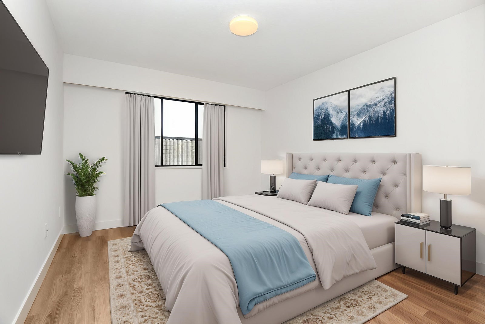 Open to all offers! Quick Possession! Move-in-ready condition, this well-run 55-plus complex is located in central Abbotsford, within walking distance to local shops, restaurants, Doctor offices, transit, & life labs. Over 960 Sq. Ft of living space, plus an enclosed north-facing solarium with storage & a bonus storage locker on the same floor. Features include beautiful new laminate flooring, freshly painted throughout, new baseboards, new light fixtures, new hardware, new bathroom vanity/mirror/ faucet, plus a newer walk–in shower with grab bars, new kitchen countertop/kitchen faucet, & a newer W/D. Good-sized primary bedroom with a WIC, maintenance fees are $447.98, which includes heat & hot water, the building has been re-piped & newer roof, 1 parking with lots of visitor parking.
